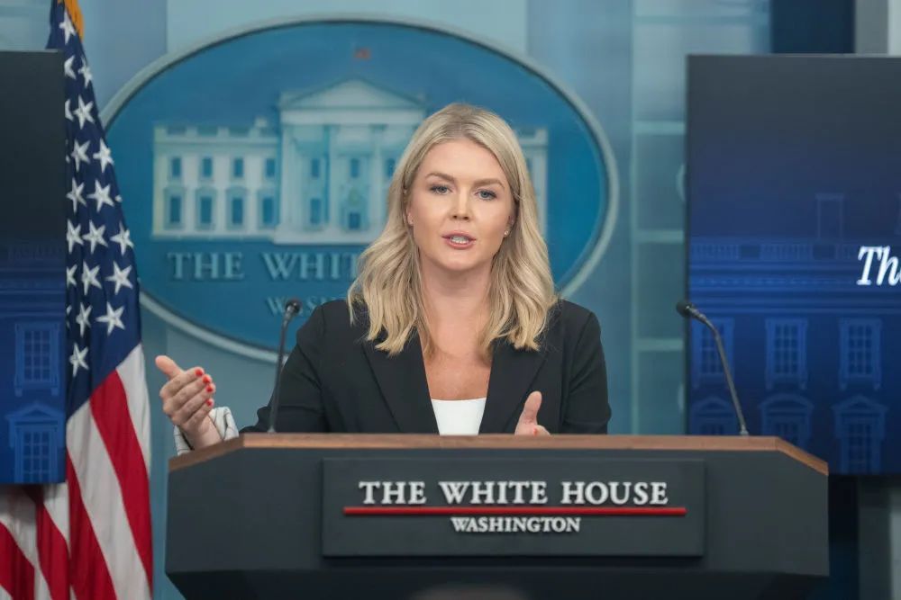 7月7日,在美国首都华盛顿白宫,白宫新闻秘书卡罗琳·莱维特出席记者会。新华社记者胡友松摄