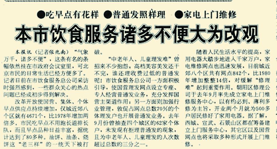 从1981年起,北京国营、集体、个体“三扇门”一齐打开,大批饮食网点面世,为市民外出吃早点提供便利。
