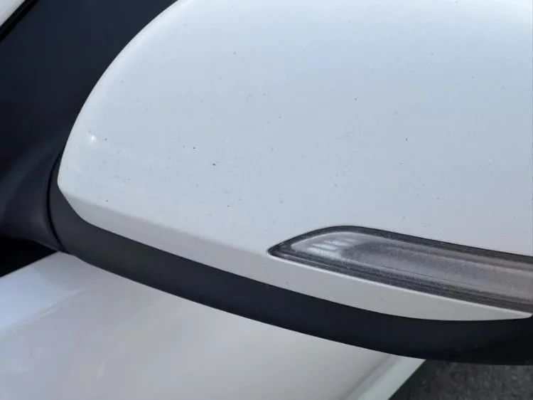 李女士提供的视频显示,车辆取还车时整体外观差异确实不明显。而后视镜的特写照片中,肉眼可见一些细微的黑色小点,挡风玻璃呈现出小范围白色点状划痕。