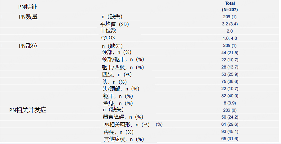 研究结论:本中期分析显示NF1-PN患儿疾病负担严重,疼痛与外观畸形是PN相关的主要并发症。PN作为多系统受累疾病,需要强调全面检查对准确诊断的重要性。