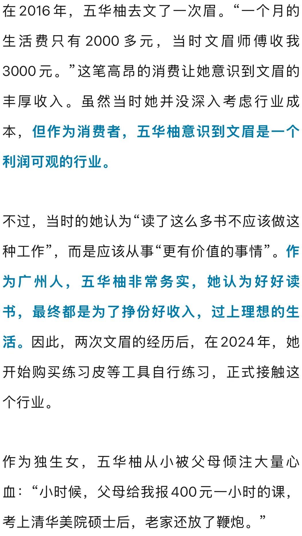 虽然母亲持反对态度,但在行动上也给予了支持。五华柚的第一个文眉客人是母亲介绍的。“我妈那个年代的阿姨很喜欢文眉,她们看到我在做这个,又相信我有审美,就愿意帮我介绍客人。”